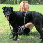 Это милая девочка с мягкой и лоснящейся шерсткой явно близкий родственник лабрадора.