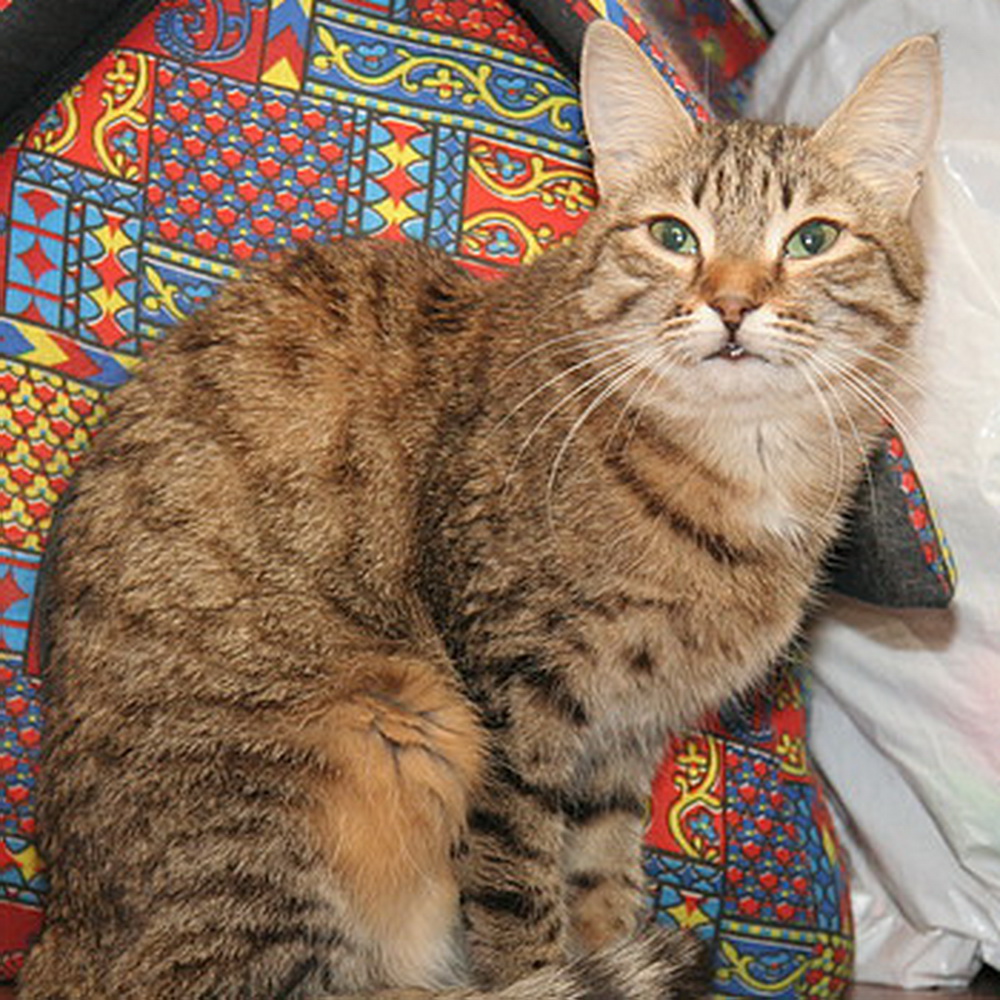 Девочка безумно ласкучая, любит спать на подушке и пока вдоволь не потерётся об человека не уснёт. Может целый день просидеть на коленях. Дружна с собаками и кошками.