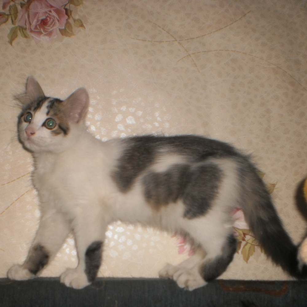 Парень Чудо! Так и назвали! Почти трёхветный (а это большая редкость).Около 2.5 мес, полупушистый. По характеру, очень, очень разговорчивый.