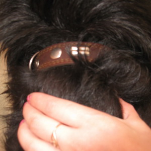 Найдена собака (девочка) помесь ризен-шнауцера с дворняжкой 14.05.2012 во дворах Бакинских Комиссров - Новаторов, лежала там 3 дня, хромает, возможно сбила машина, при ней был коричневый ошейник. тел 89045499168 Евгения 89089272243 Анна .