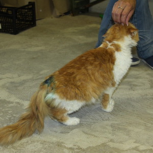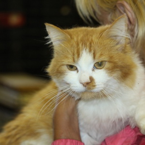 Этого котика зовут Пончик или Пончо. Его история такова: умер хозяин, и кота выставили за дверь, а он настолько ласковый и неконфликтный, что сразу попал в неприятности - напали на него уличные собаки и погрызли хвост. Хвост зашили, все потихоньку заживает. Сейчас Пончо находится на складе Пункта содержания собак, что на Посадской 3. Там его обижает кошка ,которая поселилась на складе раньше. А Пончик настолько неконфликтный, что даже сдачи не сдает ей. Как только видит человека, сразу бежит и трется о ноги, мурлычет и жалуется на жизнь. .