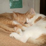 Недавно девушка Лена - друг Фонда принесла его домой из подъезда, отмыла, он отсыпался весь день и всю ночь, а на следующее утро ее старый домашний кот взбунтовался новому гостю - напал на Лену с яростью из-за