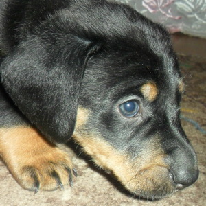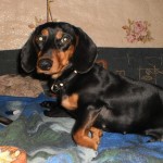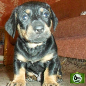 Этот мальчишка родился 5 января. Зовут его Ярик, он уже отвлекается на свое имя, знает команду "место". Прививки пока не проставлены. . Очень активный,любознательный как все малыши. Он сильно похож на таксу (мама такса) только мордочка короткая.