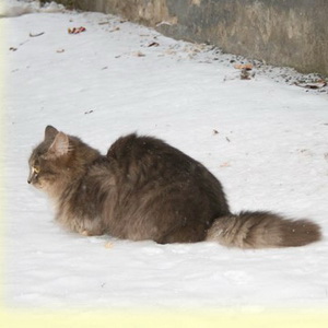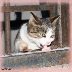 Он жил на улице и в подвале около 2-х месяцев (кто-то равнодушно выбросил его прямо перед самым новым годом), его подкармливали соседи, но на улице ему не место, потому что там на него нападают другие коты и собаки!