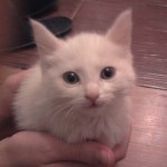 ОЧЕНЬ СРОЧНО ищем дом для Снежка - нашли его в подъезде. Котенок белоснежный, на голове серое пятнышко в форме короны,очень красивый, снежочек эдакий, глазки здоровые, блох нет. Просим всех - помогите пристроить малыша!!!!Тел: 8-952-138-03-77