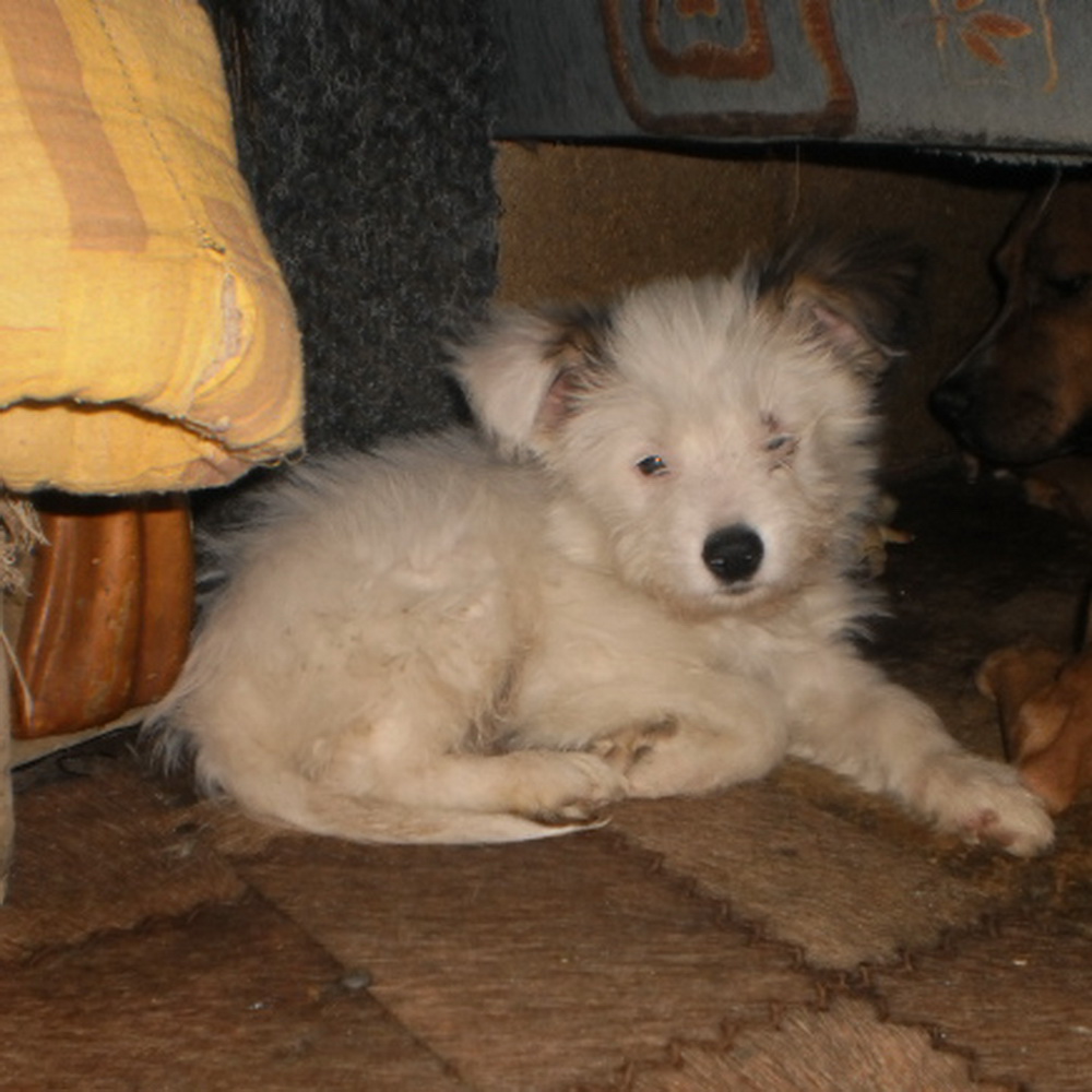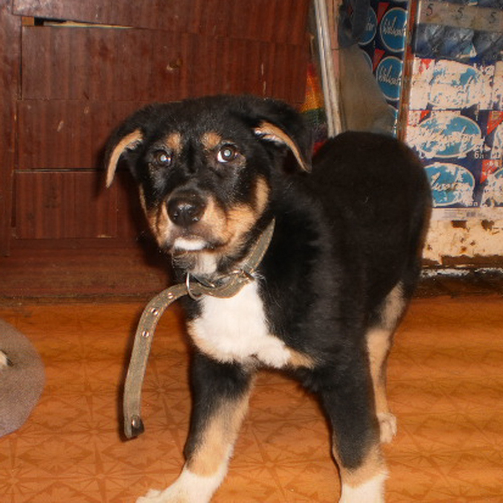 был привезён девушкой в лютые морозы.Парень хороший, приучили к ошейнику,проглистогонили.Очень ласковый ,любит когда гладят пузо.Дружит с кошками,от взрослых собак пытается постоянно защититься(рычит).с щенками бесится.Возраст 4 месяца.Вырастет крупным.Более подробно 8 908 922 46 93.