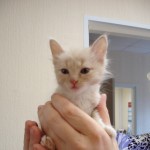 Маленькая, пушистая малышка с синими глазами очень хочет найти своего хозяина. Ее бросили в подьезде ночью, прямо на цементном полу со своими братиками и сестренками. Остальные малыши уже нашли хозяев. Осталась только эта кроха. Но малышка не унывает: жизнерадостна, ласкова, игрива, любознательна. Возраст примерно 1,5 месяца, цвет кремовый а шейка и животик беленькие, и на лапках белые носочки, средней пушистости. Ест все, видимо долго была голодна. Где ты, наш добрый хозяин? (подробно...) Комментарии (0)
