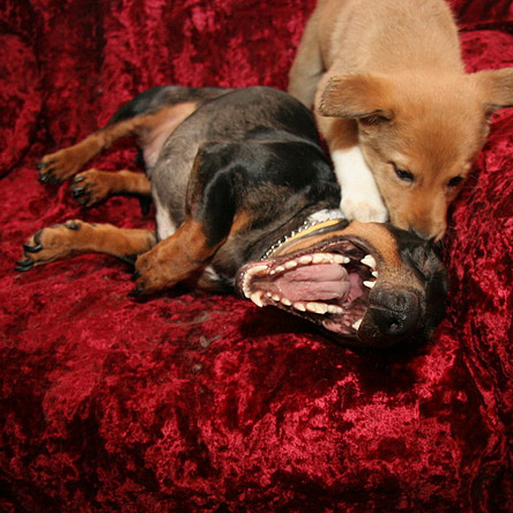 Свою кличку Моцарт получил из-за своего желания общаться - он всё время что-то рассказывает, поскуливая и виляя хвостом.