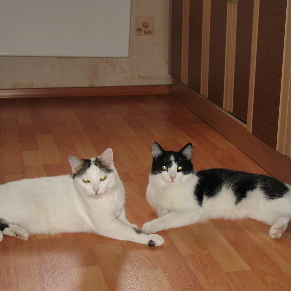 Оба животных стерилизованы, к лотку приучены, в еде неприхотливы - едят сухой корм Фрискас, но можно побаловать и влажным.